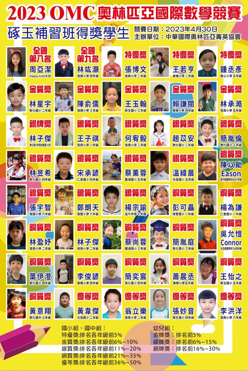 - 狂賀!本校學生參加 2023 OMC奧林匹亞國際數學競賽成績優異 !!!