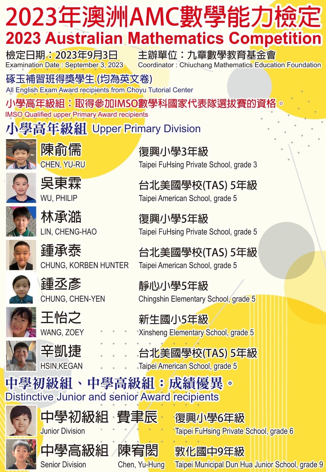 - 狂賀 !本校學生參加【2023全美中學數學8年級能力測驗(2023AMC(8))】成績優異!!!
