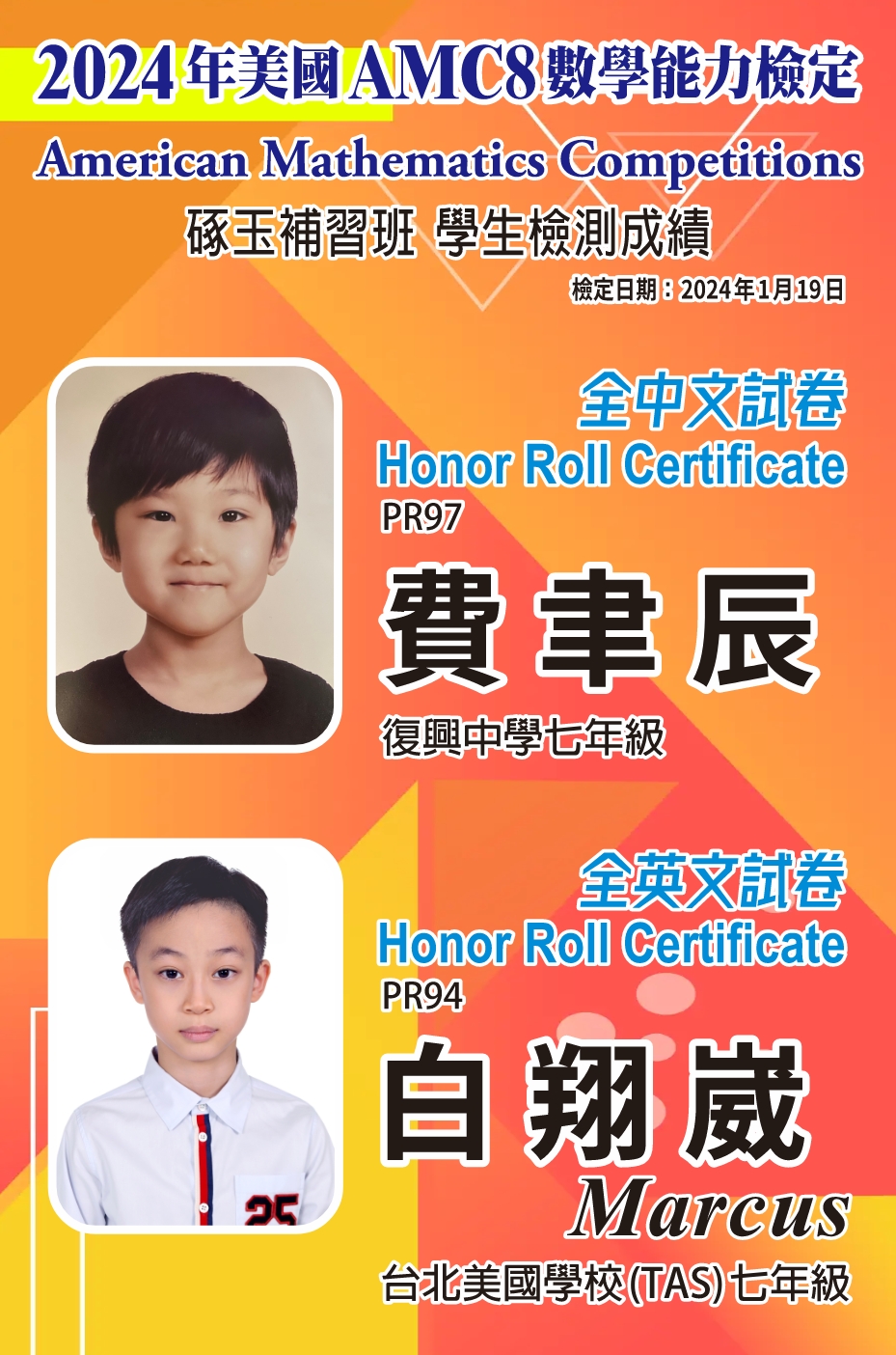 - 狂賀 !本校學生參加【2024全美中學數學8年級能力測驗(2024AMC(8))】成績優異!!!