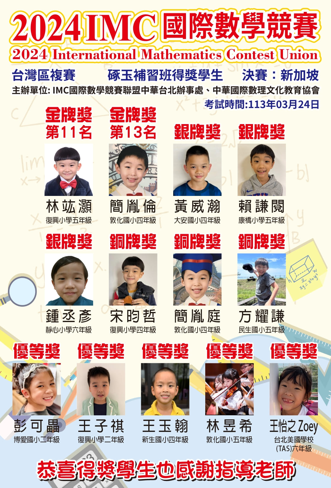 - 狂賀!本校學生參加 2024IMC奧林匹亞國際數學競賽台灣區初賽成績優異 !!!