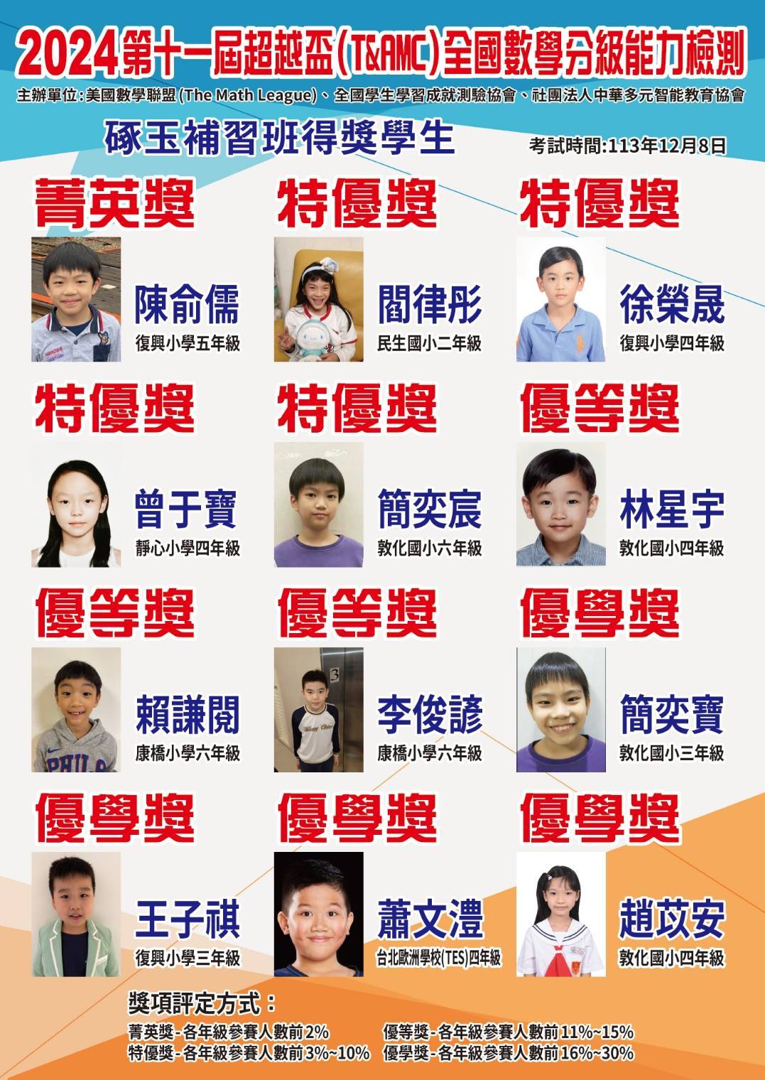 狂賀!本校學生參加2024第十一屆超越盃(T&AMC)全國數學分級能力檢測成績優異 !!!