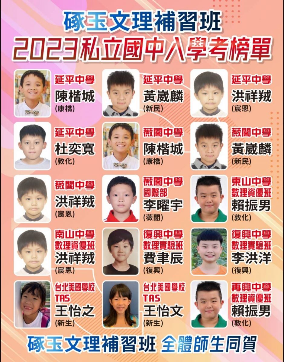 - 狂賀!本校學生參加 2023私立國中入學考成績優異 !!! 全體師生同賀