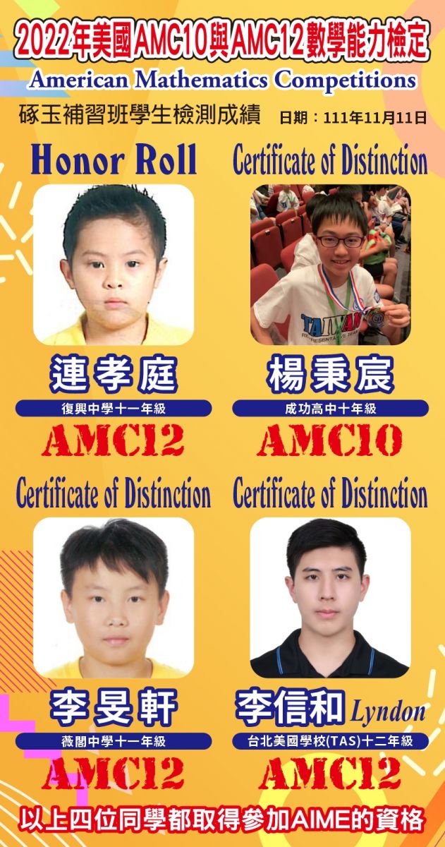 狂賀 !本校學生參加【2022全美中學數學10年級能力測驗(2022AMC(10))】及【2022全美中學數學12年級能力測驗(2022AMC(12))】成績優異!!!