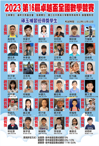 狂賀!本校學生參加2023第十六屆卓越盃全國數學競賽成績優異 !!!