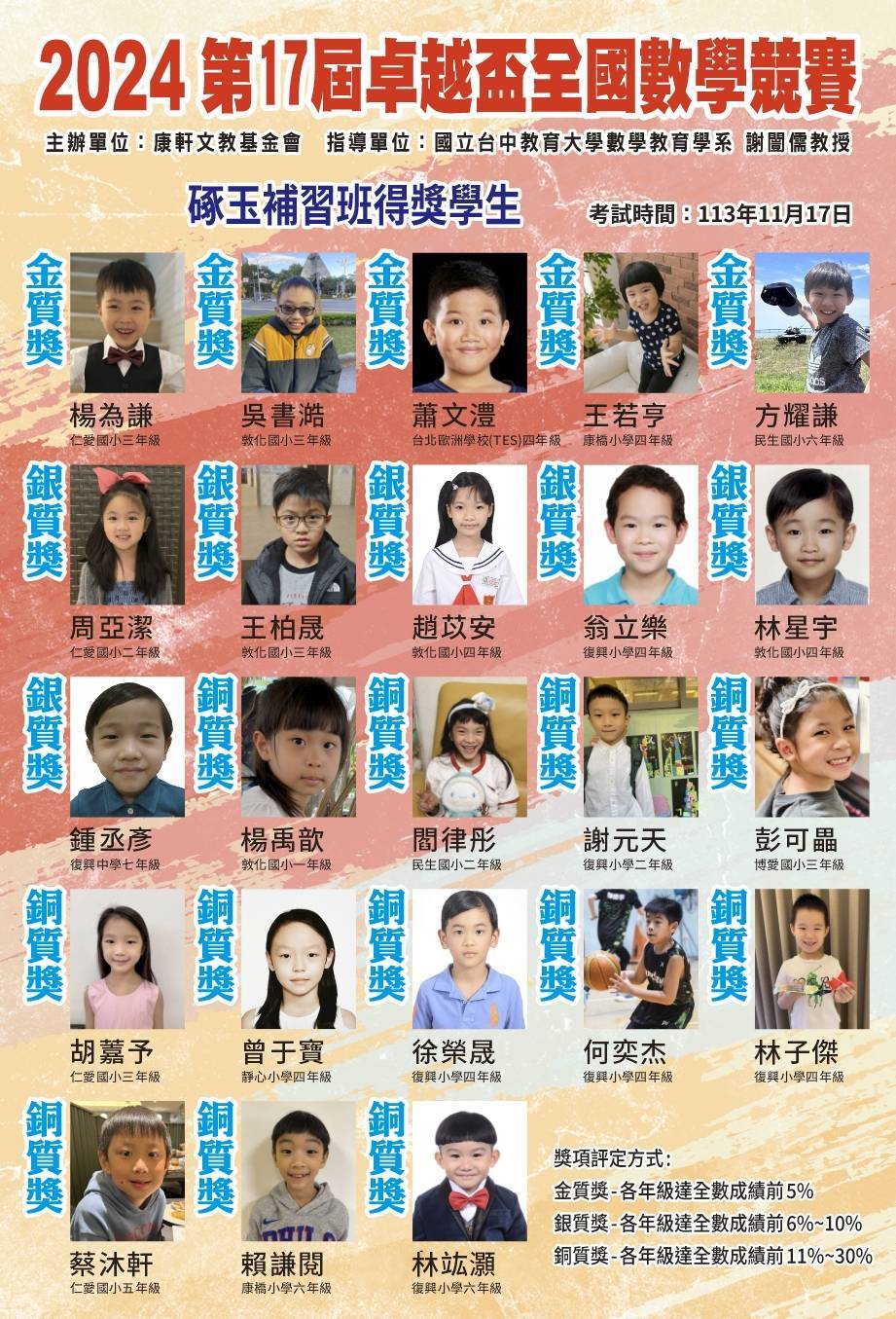 狂賀!本校學生參加2024第十七屆卓越盃全國數學競賽成績優異 !!!