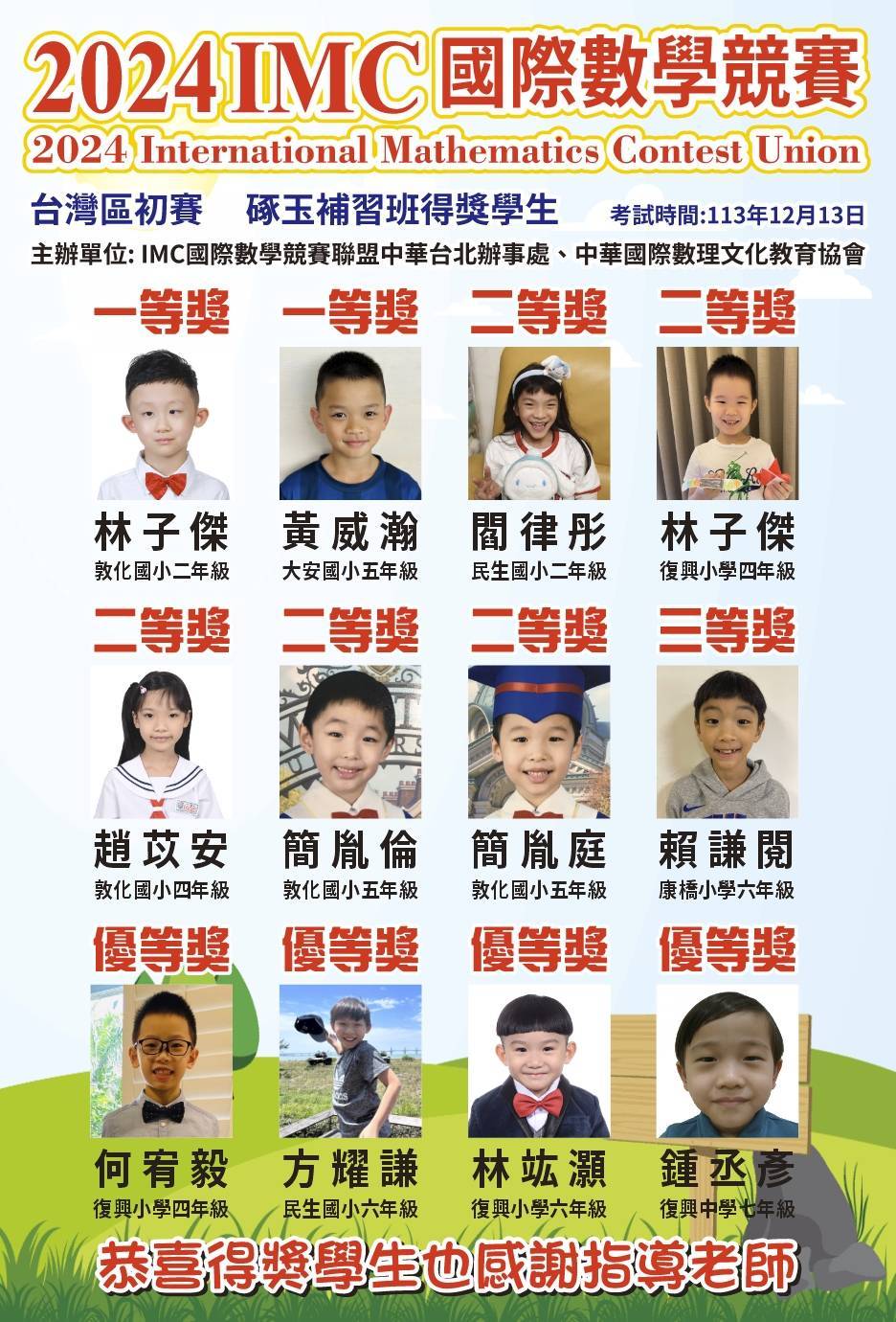 狂賀!本校學生參加 2024IMC奧林匹亞國際數學競賽台灣區初賽成績優異 !!!