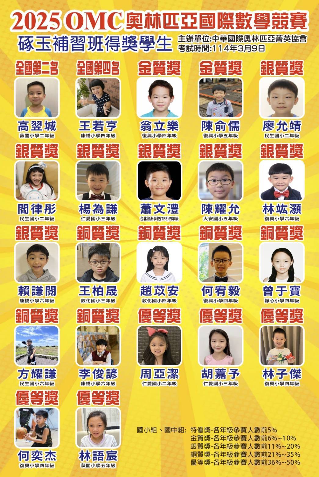 狂賀!本校學生參加 2025 OMC奧林匹亞國際數學競賽成績優異 !!!